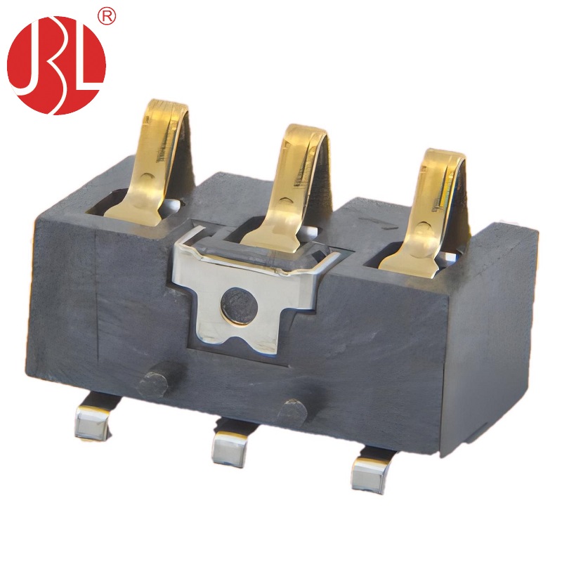 The 3.0mm pitch spring battery connector is a compact, surface-mount, right-angle solution designed for reliable power connections in small electronic devices. This 3-way connector features a durable spring contact mechanism, ensuring secure and stable connections with battery terminals. It offers versatile housing height options of 4.6mm, 5.0mm, 5.4mm, 6.0mm, 6.8mm, and 7.2mm, paired with corresponding contact height options of 3.1mm, 3.5mm, 3.9mm, 4.5mm, 5.3mm, and 5.7mm, providing flexibility for various design needs. Part number variants include BC-293PD-460, BC-293PD-500, BC-293PD-540, BC-293PD-600, BC-293PD-680, and BC-293PD-720, each tailored to specific housing and contact heights. Rated for DC 12V and 2A, it is ideal for low-power applications such as portable electronics, IoT devices, and medical equipment. The right-angle design optimizes PCB space, while the surface-mount configuration ensures easy assembly. Its robust construction guarantees reliable performance in demanding environments, making it a practical and efficient choice for modern electronics.
