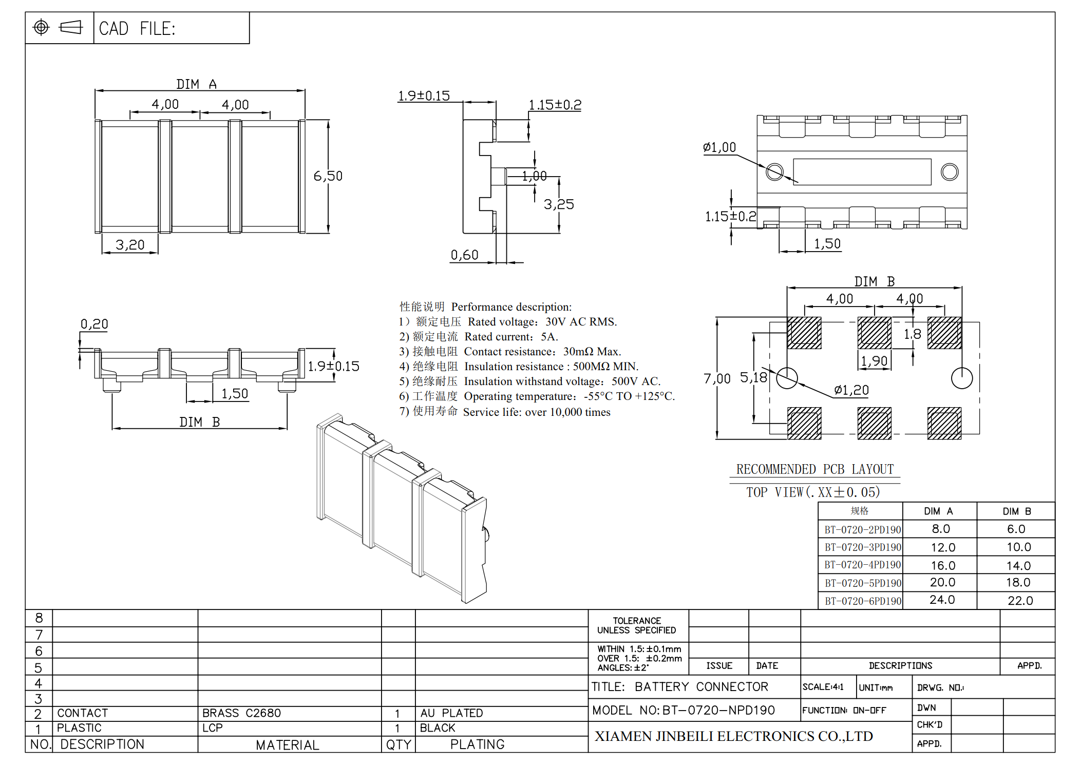This female spring battery connector is a robust and reliable surface-mount solution designed for securely interfacing with standard cylindrical battery cells in a wide array of portable electronic devices. Its primary defining feature is the 4.0mm pin pitch, which ensures perfect alignment and compatibility with standard battery terminal spacings. The connector is offered in multiple circuit number options, including 1-way, 2-way, 3-way, 4-way, 5-way, and 6-way configurations, providing exceptional design flexibility for everything from simple single-cell applications to more complex multi-battery series or parallel arrangements.