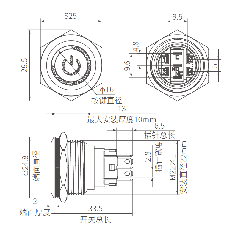 11.Funcition: Momentray ON-OFF/OFF-(ON) 12. Operating Temperature:-20°C~+85°C 13.Degree of protaction:IP65