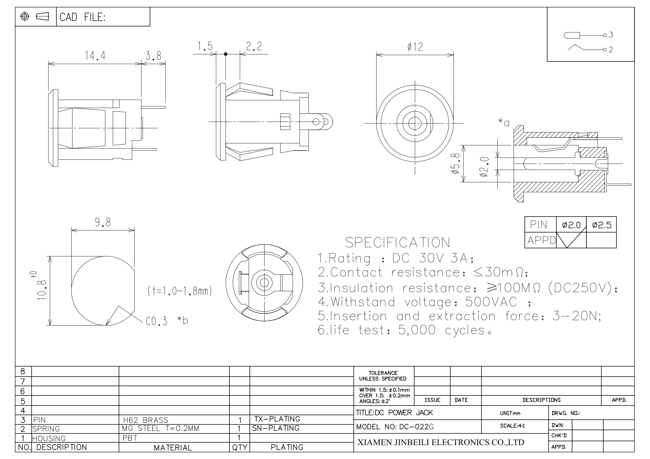The DC Jack is a snap-in panel mount power connector designed for easy installation and secure connection. It features solder terminals for reliable electrical conductivity, ensuring stable power transmission. The center pin options include 2.1mm and 2.5mm, providing compatibility with a wide range of power supplies and devices.