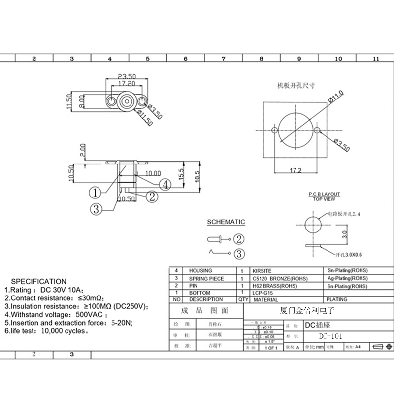 DC-101 Screw Panel Mount DC Power Jack Free Hanging