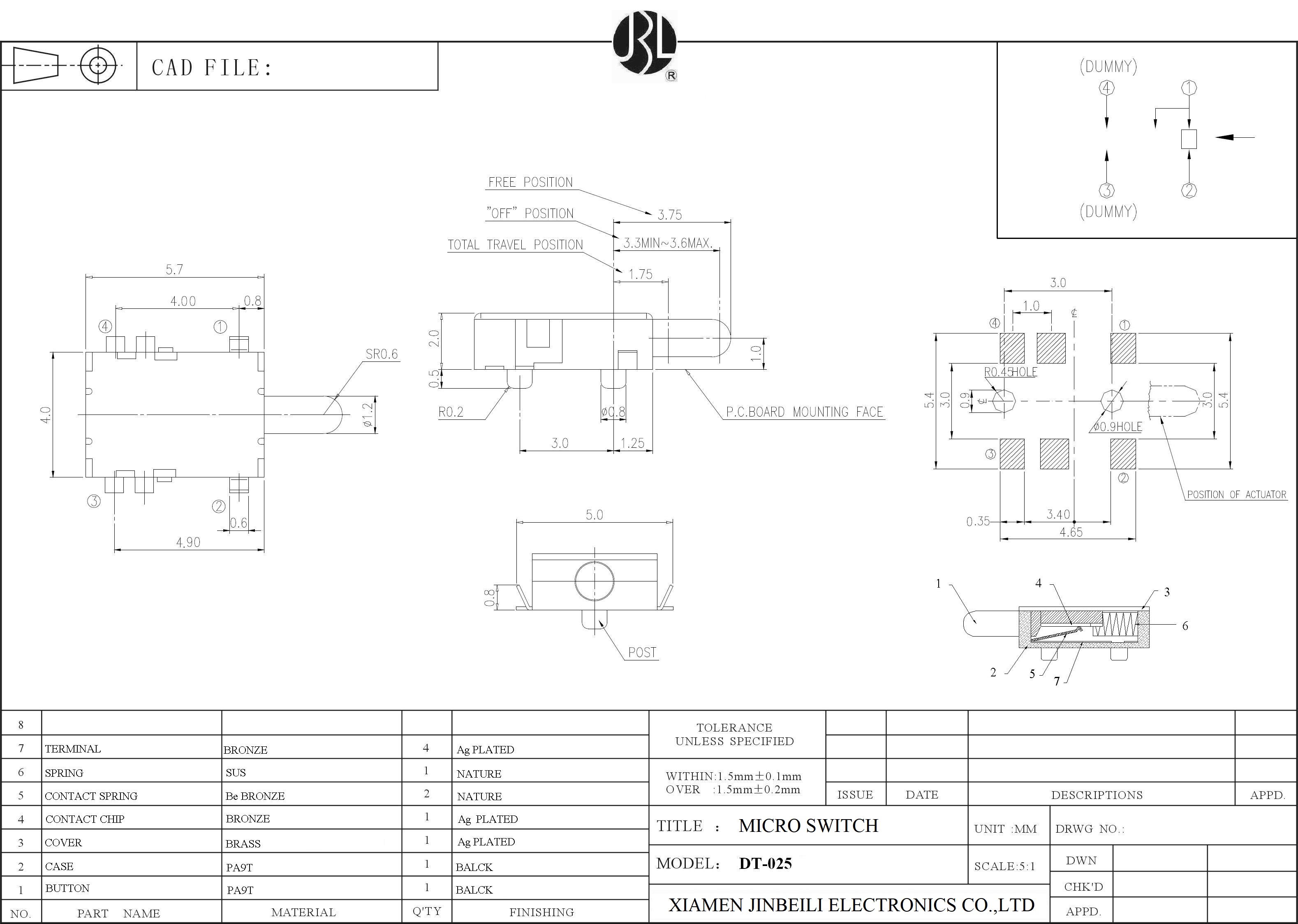 Interrupteur de détecteur de DT-025 Interrupteur à action instantanée à angle droit à montage en surface SPST DC12V 10mAh