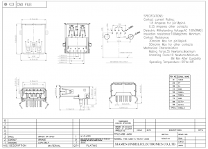 | Courant de contact nominal : | 1,8 ampères pour pin1&pin4, 0,25 ampères autres contacts |