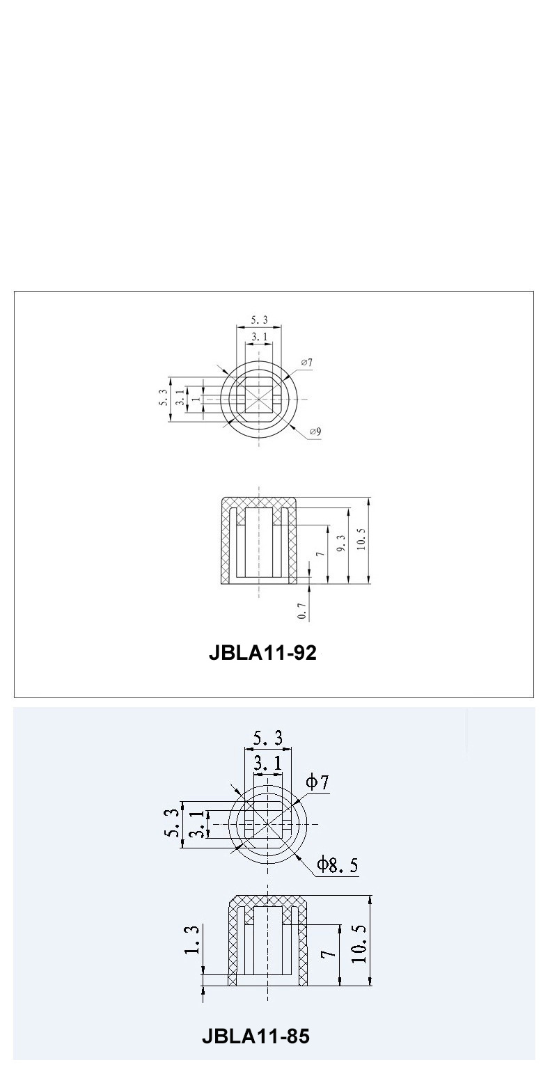 The cap is offered in two standard diameters, 9.0mm and 8.5mm, providing flexibility for different panel layouts and aesthetic preferences. With a consistent height of 10.5mm, it offers a comfortable and tactile user interface.