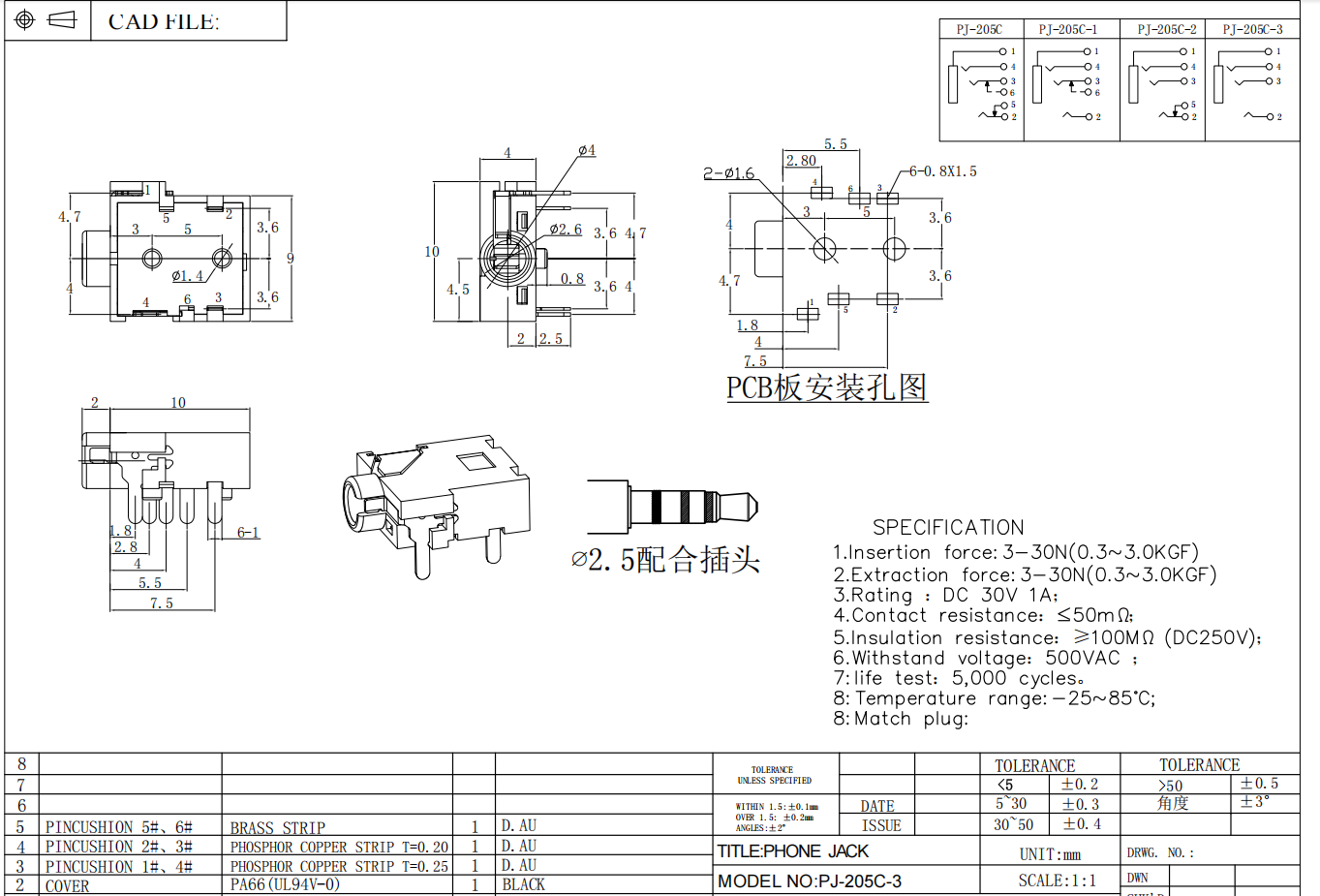 This high-quality 2.5mm audio jack is a compact, reliable through-hole right-angle headphone and microphone connector designed for space-constrained PCB applications. Rated for DC 30V 1A, it delivers stable audio signal transmission for portable devices, communication equipment, medical instruments, consumer electronics, and industrial audio systems.