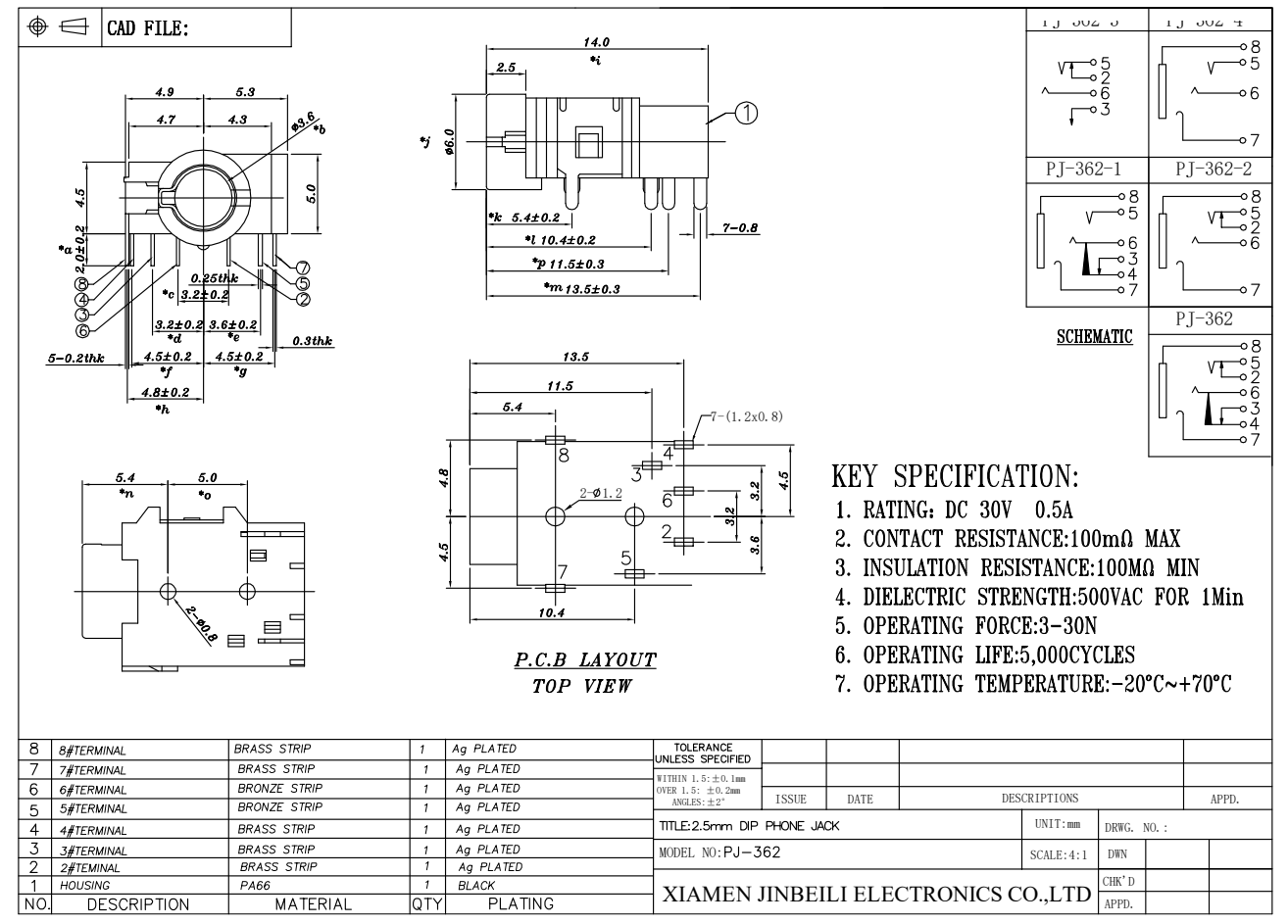 PJ-362 3.5mm Audio Jack Through Hole Right Angle