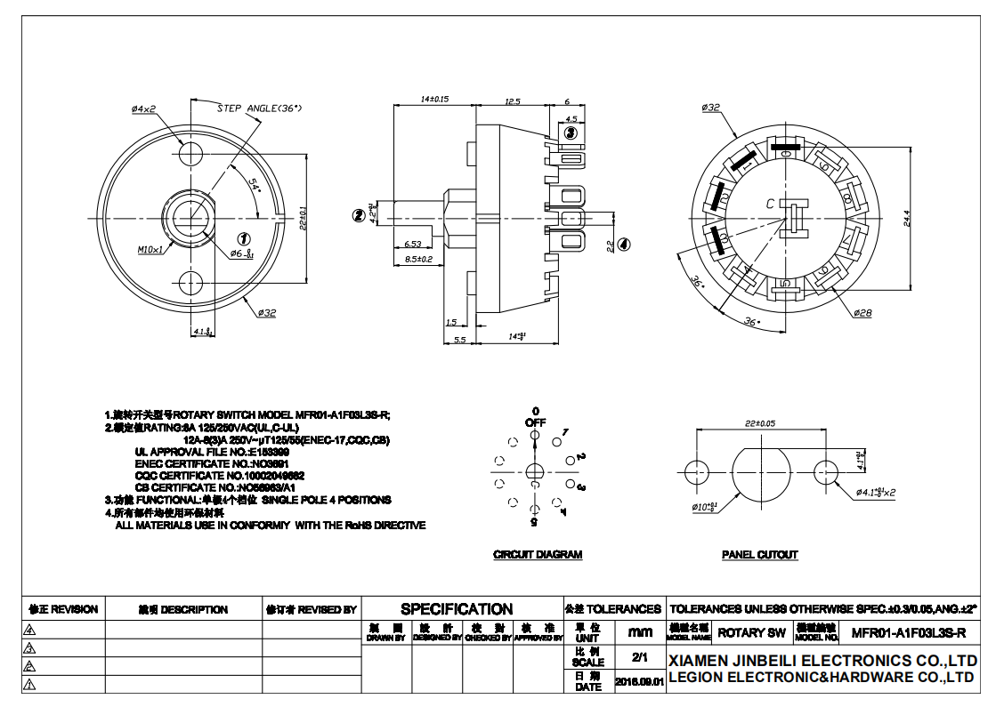 Round rotary swich MFR01-A1F03L3S-R AC 125V/250V 8A 12A 4 positions rotary limit switch