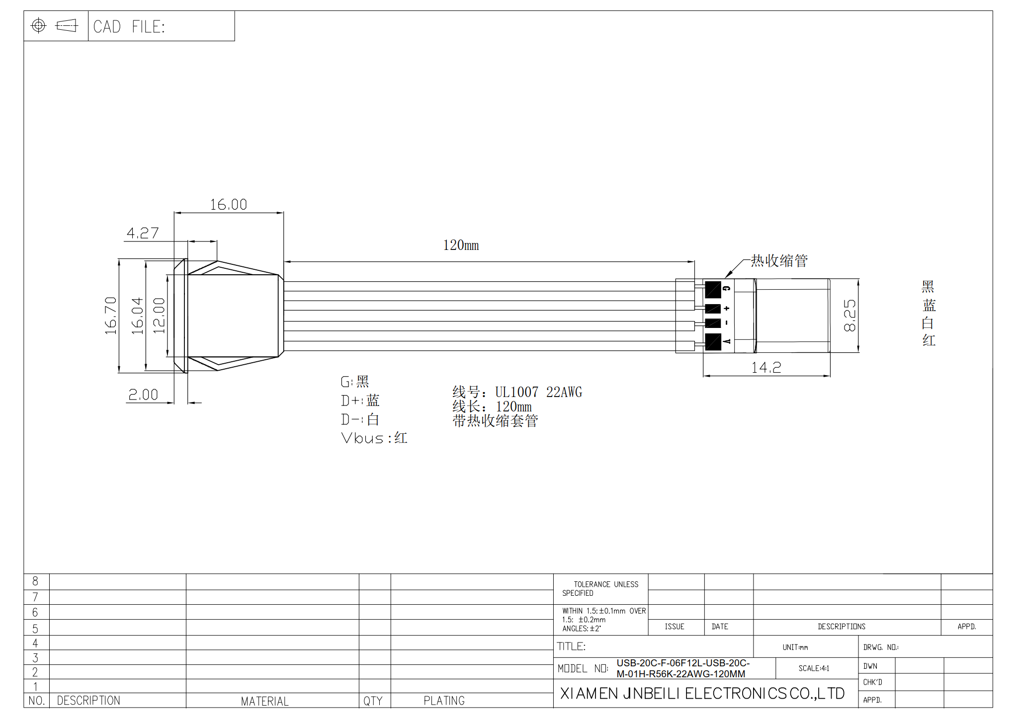 The cable supports USB 2.0/3.0 data transmission and charging, with four-wire configuration (Vbus, GND, D+, D-) ensuring stable power delivery and efficient data syncing. Users can choose from a range of wire lengths (50mm to 600mm) to suit specific needs, whether for short-range connections in compact spaces or longer runs in larger installations. Additionally, wire dimensions of 22AWG or 24AWG offer flexibility in balancing current-carrying capacity and flexibility—22AWG handles higher power loads, while 24AWG provides lighter, more maneuverable cabling.