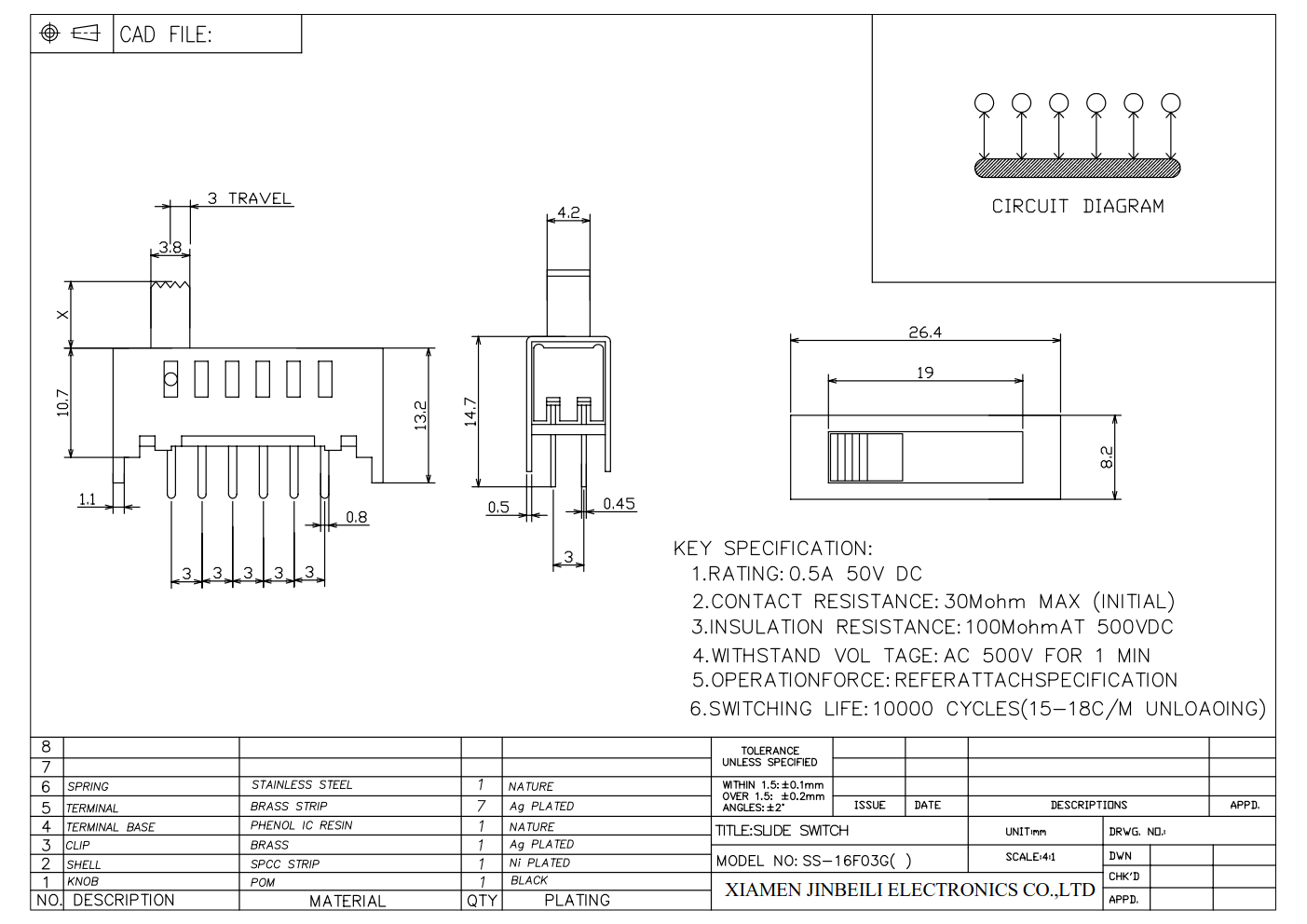 - Rated for DC30V 0.3A: Suitable for low-voltage applications, delivering dependable performance within specified electrical parameters.