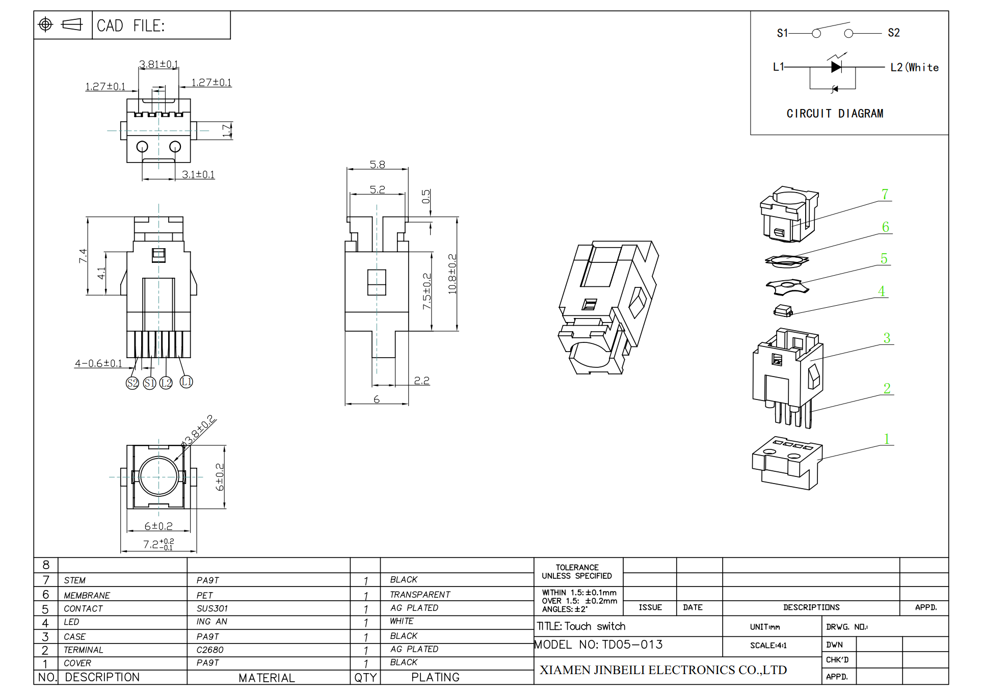TD05-013 Series Panel Mount LED Illuminated Tactile Switch for Soldering