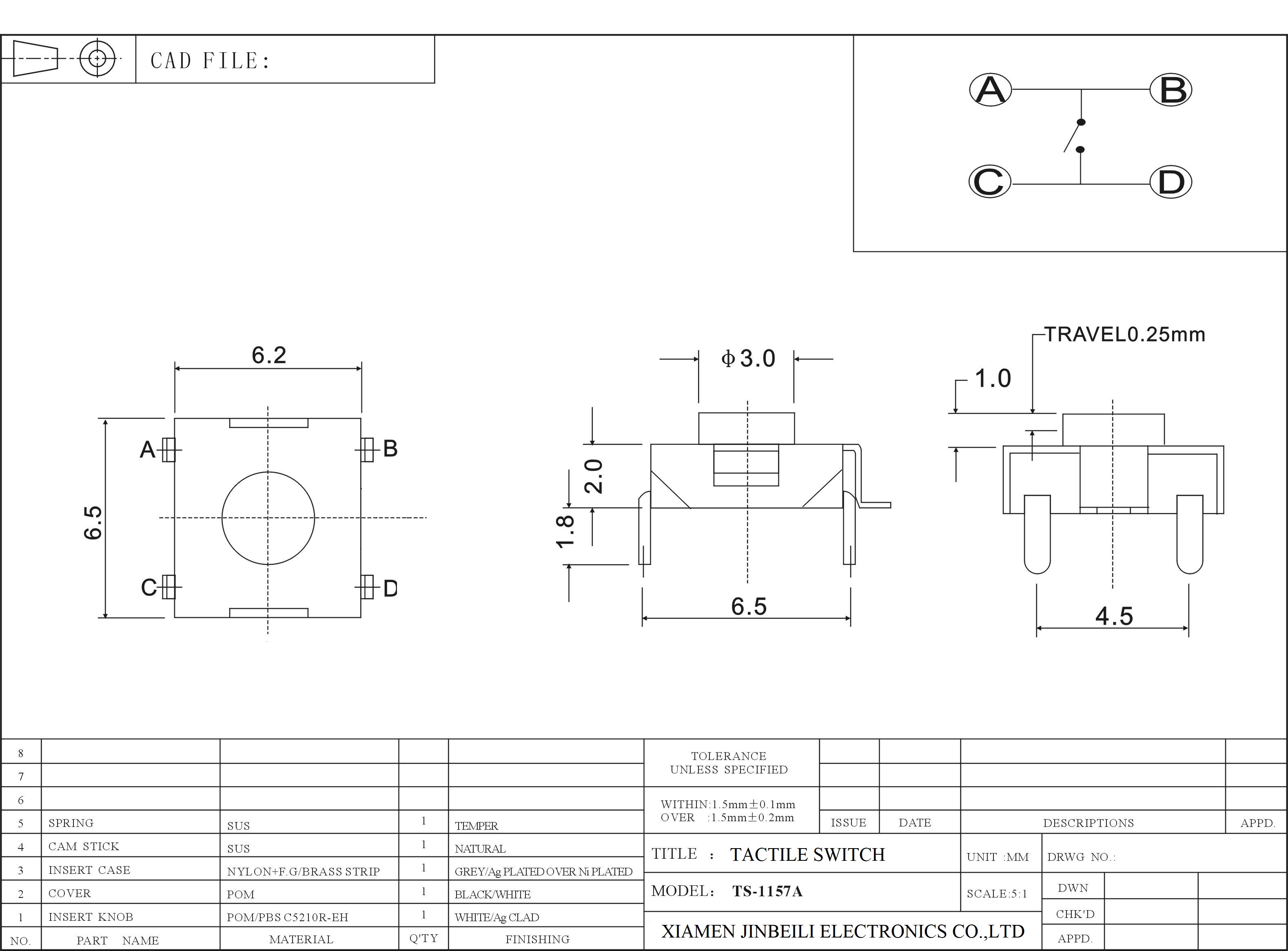 TS-1157A 6.2×6.2 mm Tactile Switch DIP