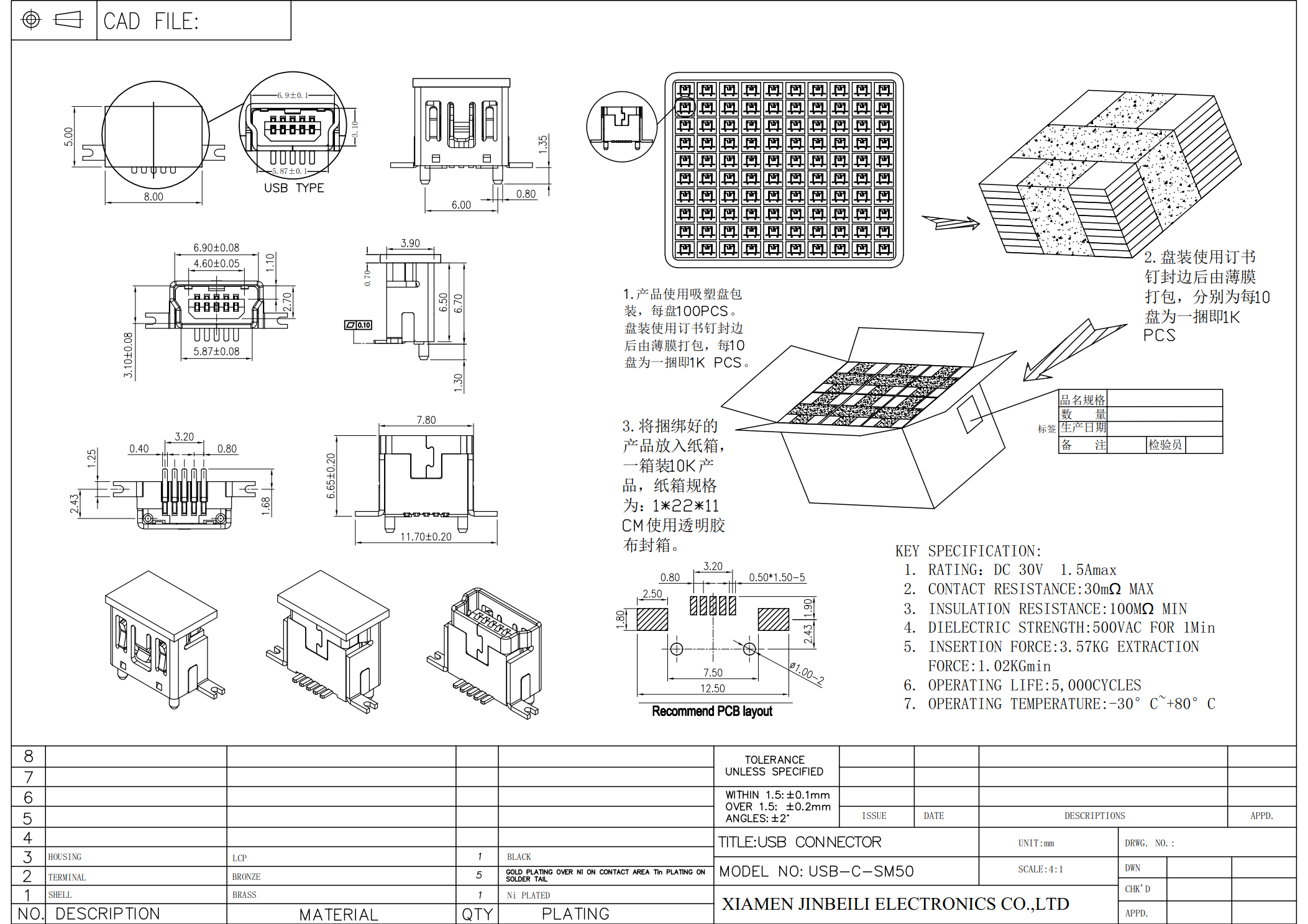 USB-C-SM50 USB Mini B Jack Surface Mount